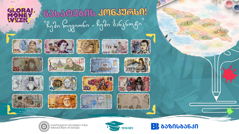 ფულის გლობალური კვირეულის 2026 წლის კამპანიის ფარგლებში საქართველოს ეროვნული ბანკის ფინანსური განათლების პლატფორმა ფინედუს ინიციატივითა და ბაზისბანკის მხარდაჭერით გაიმართა ნახატების კონკურსი "ჩემი რეგიონი - ჩემი ბანკნოტი".